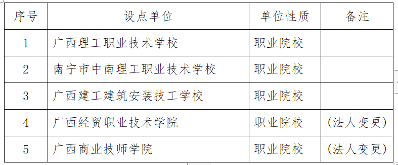根据教育部办公厅《关于严格规范高等学历继续教育校外教学点设置与管理工作的通知》(教职成厅〔2022〕1号)《关于做好2024年度高等学历继续教育专业和校外教学点设置与管理工作的通知》(教职成司函〔2023〕29号)《广西壮族自治区高等学历继续教育校外教学点设置与管理办法 (试行) 》(桂教规范〔2023〕14号)和自治区教育厅关于做好2024年全区高等学历继续教育校外教学点备案工作的通知(桂教规划〔2024〕1号)等文件要求,我校对申报2024年新增高等学历继续教育校外教学点进行了遴选。经材料审核、考察调研、专家评议、校长办公会审定,现将名单公示如下 (排名不分先后),最终备案结果将以上级教育行政部门公布为准。